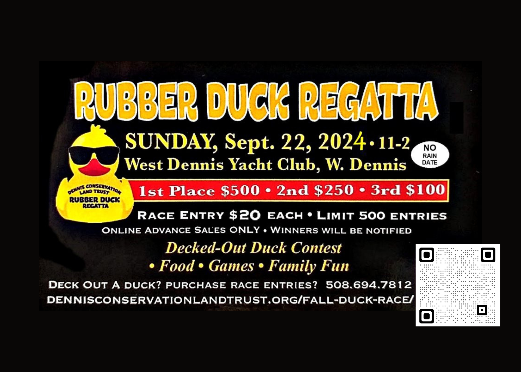 NOTICE: After online sales have closed at the end of Friday, September 20th, a number will be assigned to each race entry purchased. The complete list of entry numbers and their purchasers will be shared with all purchasers unless anonymity is specifically requested to the DCLT in advance by email (info@dennisconservationlandtrust.org).
